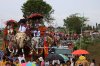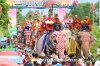 Young men preparing for ordination (Nak) wear vibrant traditional attire and ride beautifully decorated elephants in a lively procession around the village, accompanied by local music and warm community welcomes.
